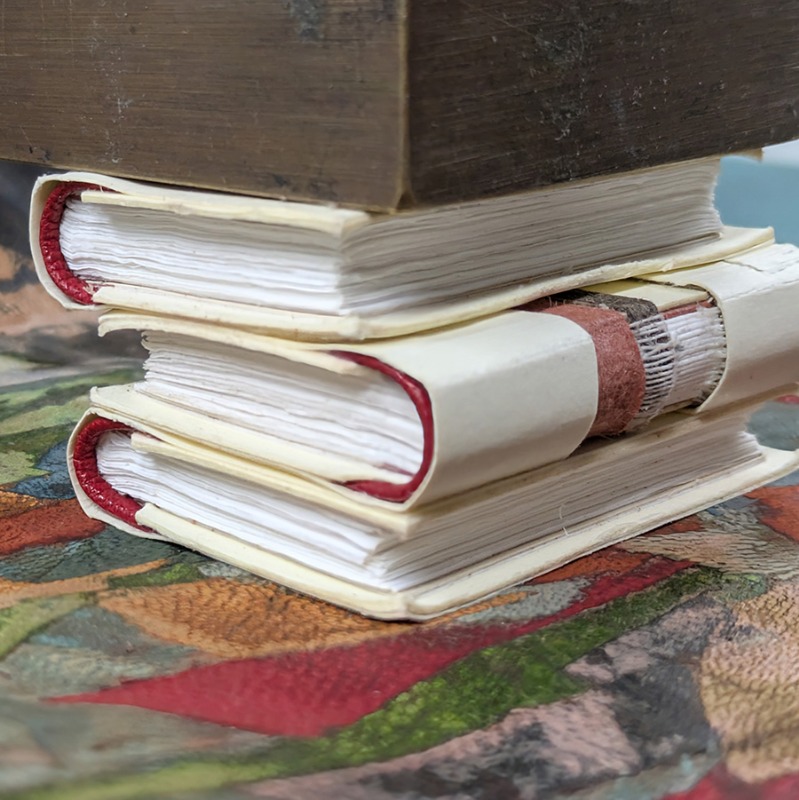 Das oben waren 2 in der ersten Serie, wobei ich auch gepfuscht habe Klebebinding mit Heftung als Attrappe. Jetzt nochmal x3, aber richtig geheftet... Größe der Serien etwa gleich.