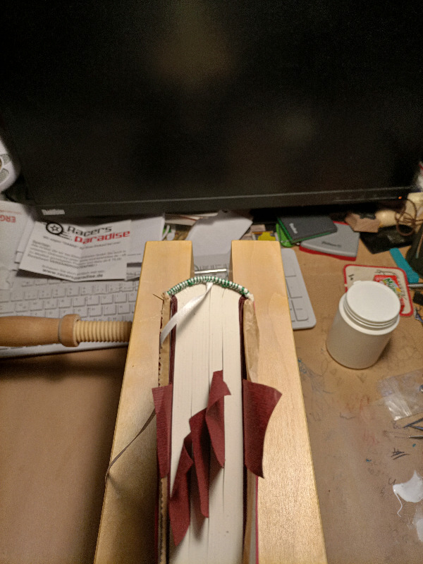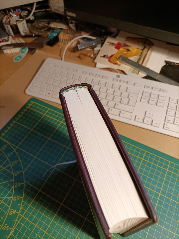 Gebunden wieder "auf meine übliche Weise", auf Schnüre und in Leder.