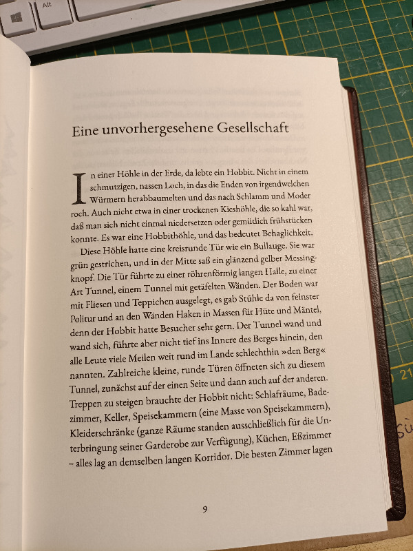 Wollte zu der hübschen Gesamtausgabe des "Der Herr der Ringe" eine ähnliche Ausgabe vom Hobbit haben, die es auch gäbe - aber, bei der Gelegenheit habe ich mal die ersten 3 Seiten der Übersetzung von Krege gelesen und ich wusste, das wird nichts.