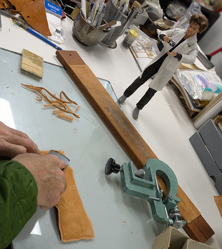 Mein erstes Projekt als Rentner, eine Schachtel/Ständer für ein Falzbein. Falzbein ist das Geschenk für die Mäzenin einer Vortrags-/Workshopserie die ich ins Leben gerufen habe und 9 Jahre lang geleitet habe. Gibt Luft nach ober für Verbesserung, aber im Ganzen bin ich ganz zufrieden. War auch mein erstes Mal in SEHR langer Zeit Leder zu schärfen und mich wieder an mein Anno 1987 Ascona Schärf-fix zu gewöhnen (den Neuen habe ich verkauft)
