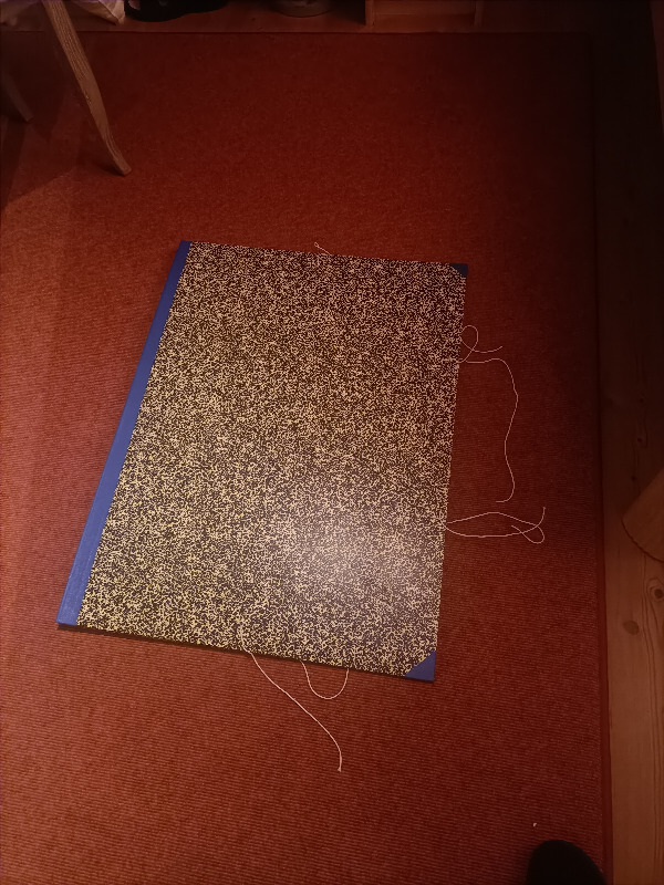 Ich hab also zwei Pappen zusammengeschustert und ein paar Schnüre dran gemacht, schon sieht das Ding aus wie eine Mappe. Aber: definitiv nicht meine Größe.