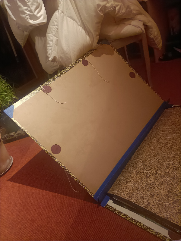 Dann die Pappe: Das Papier ist natürlich verkrumpelt, frage mich, wieso das immer mit Leinen funktioniert.