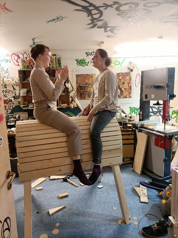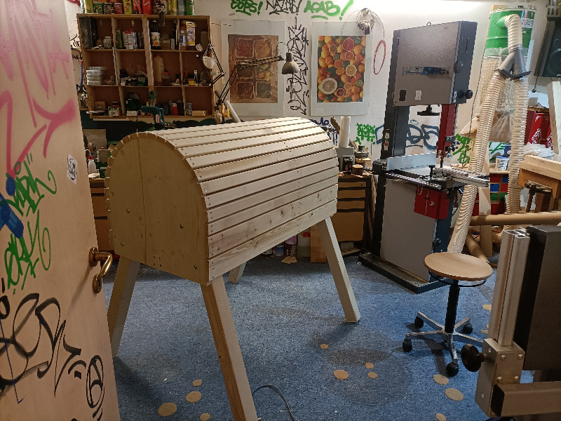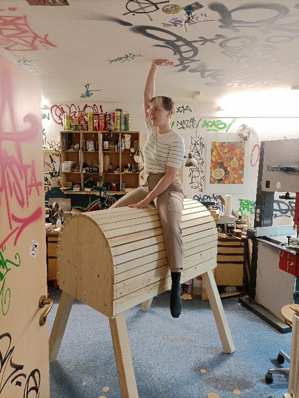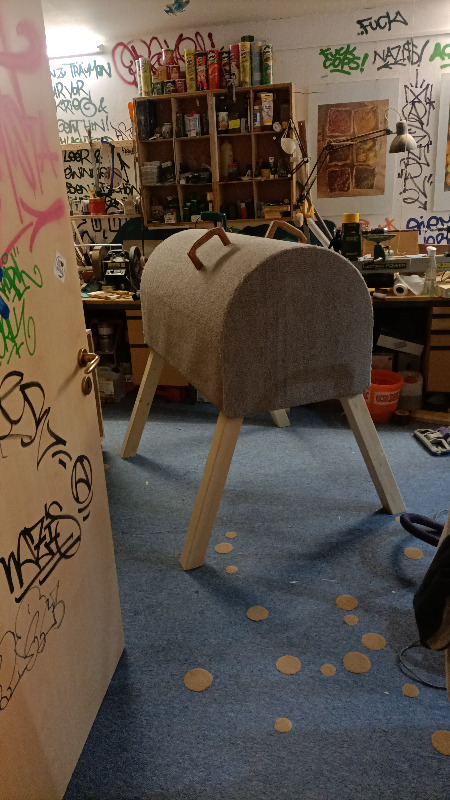 War ein wenig abgelenkt von der Bastelei eines Voltegierübungspferds. Jetzt wartet es drauf, dass es jemand aus dem Keller hochträgt.