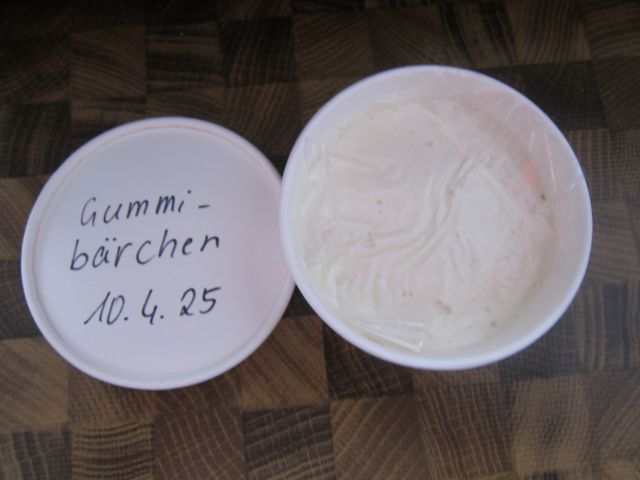 Das Rezept habe ich durch vier geteilt, weil das sonst viel zu viel ist für unseren Bedarf. Es schmeckt übrigens richtig lecker (ohne komischen Nachgeschmack) und ist und bleibt später cremig.