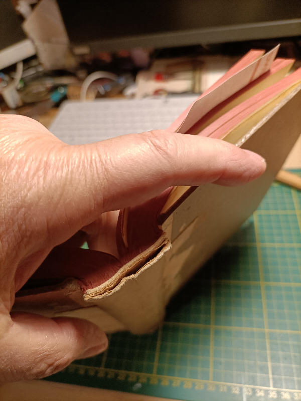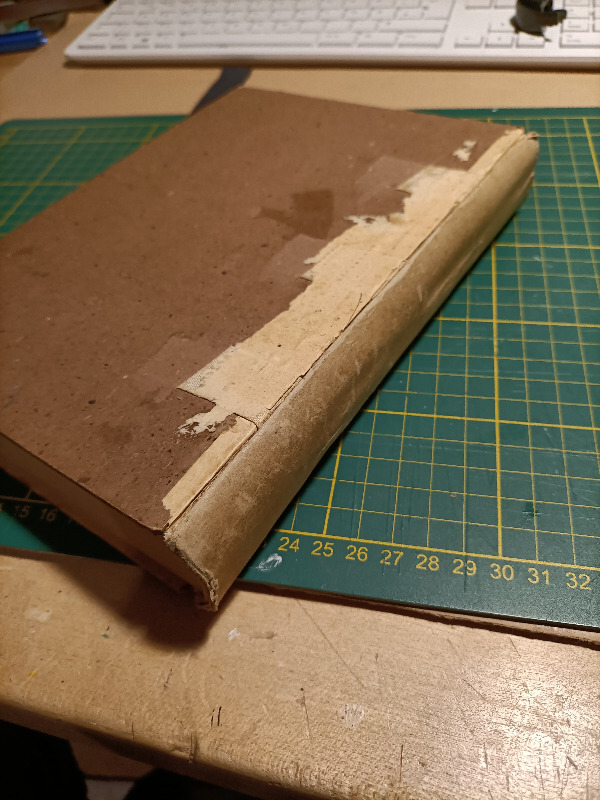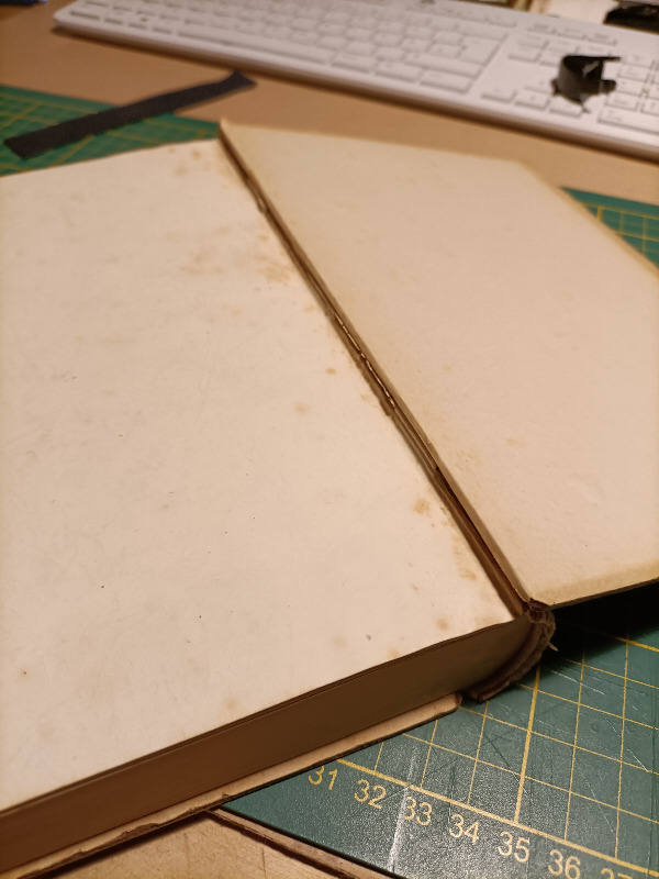 Ich werde das Buch jedenfalls so in dem Zustand lassen, aber neugierig bin ich trotzdem. (Ich kann dann in dem Buch nachlesen, wie der Einband weitergegangen wäre)